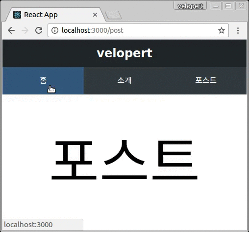 /메인 라우트로서, 프로젝트에서 가장 처음 보여줄 페이지입니다.Home컴포넌트를 보여줍니다./about이 라우트에서는About컴포넌트를 보여줍니다./post이 라우트에서는Posts컴포넌트를 보여줍니다./post/:id/이 라우트에서는Post컴포넌트를 보여줍니다.id라는 파라미터를 화면에 렌더링합니다.
