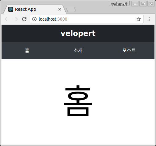 자, 이제 index.js 파일을 저장하고 브라우저에서 열어보세요. 첫 화면에서 홈이 보여지나요?