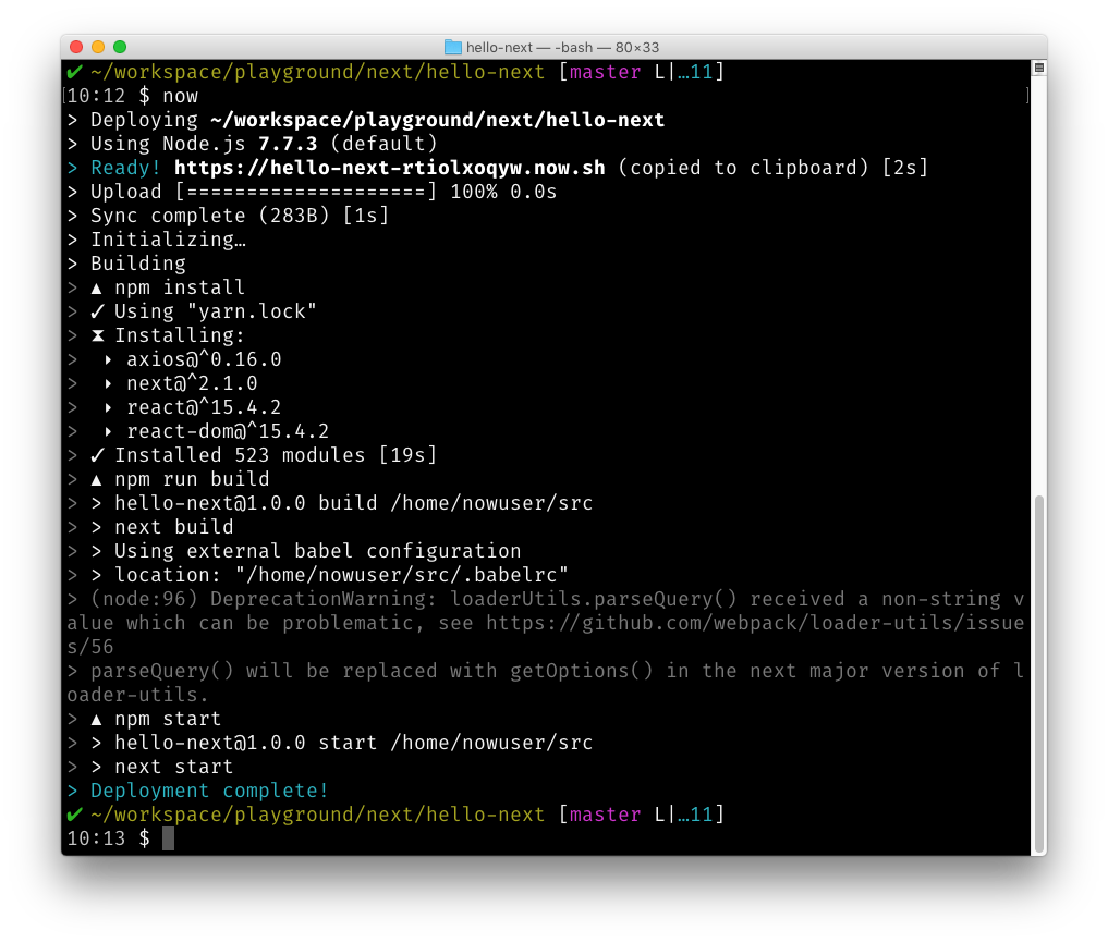 프로젝트를 완성하고 릴리즈 할때는 또 다른 명령어를 사용합니다. 그리고 Next.js 개발사 zeit 에서는 쉽게 프로젝트를 올릴 수 있는 now 라는 서비스도 제공해주는데요, 한번 사용하는 방법을 알아보겠습니다.